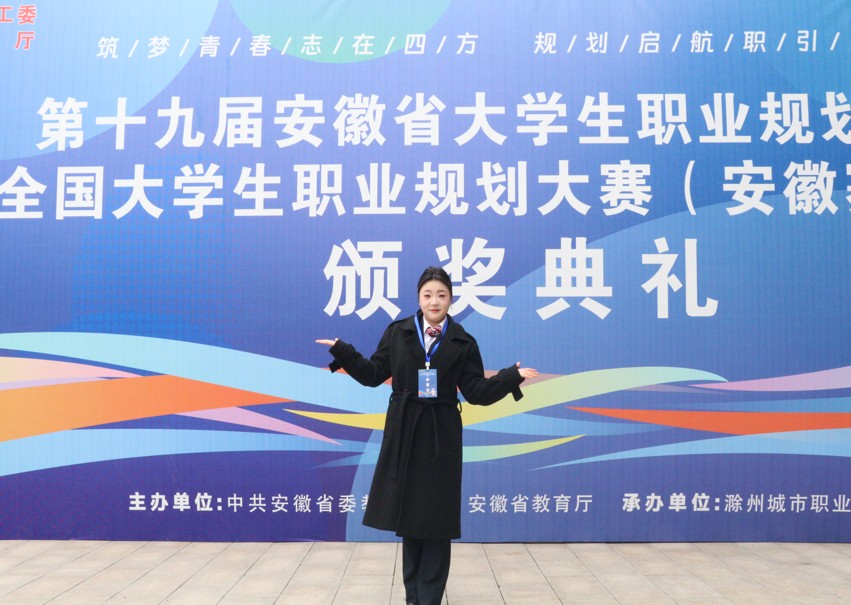 在第十九届安徽省大学生职业规划大赛暨第三届全国大学生职业规划大赛(安徽赛区)省级决赛中,我院学子马萍在成长赛道(职教组)中脱颖而出,凭借清晰的职业规划、扎实的专业素养与突出的实践能力斩获金奖,为学院赢得荣誉。