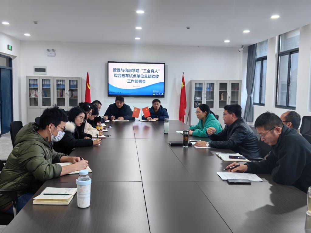 12月7日下午,管理与信息学院“三全育人”综合改革试点建设验收迎检部署会在润德楼301会议室召开。会议由党总支书记陈兴旺主持。