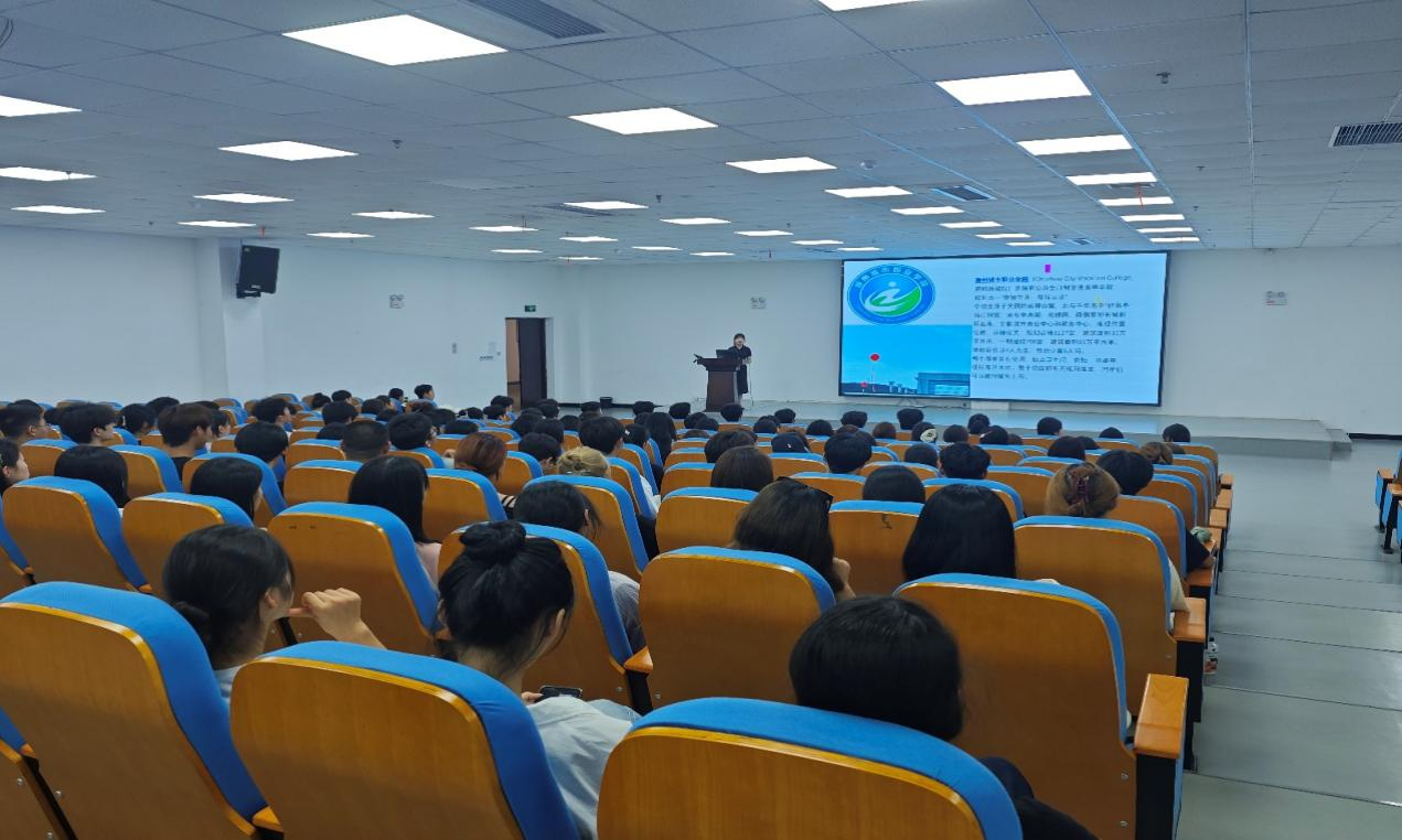 活动进行到第二环节:由专业课李老师在报告厅为新生进行入学教育,以及本专业的就业前景与课程体系。