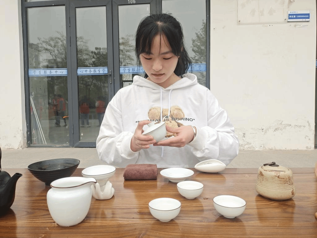 品茶活动在下午三点准时开始,管理系闻清健,刘璇两位主泡一起泡绿茶,并将泡好的茶发与同学品尝。如此甚好的茶可不能独享呀,管理系学生会成员将泡的茶送与食堂阿姨,保安大叔,宿管阿姨,医务室小姐姐等一起品茶。管理系学生会与茶艺社一起将这份春日暖阳传达给滁城院每一个人。
