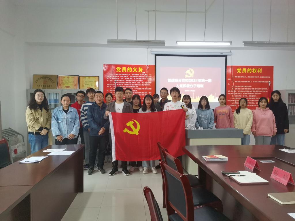 4月21日下午,管理系分党校于系党员活动室举行管理系2021年第一期入党积极分子培训开班仪式暨培训第一讲,管理系党总支支委委员、第一期培训学员参加,会议由系党总支青年委员杨静怡主持。