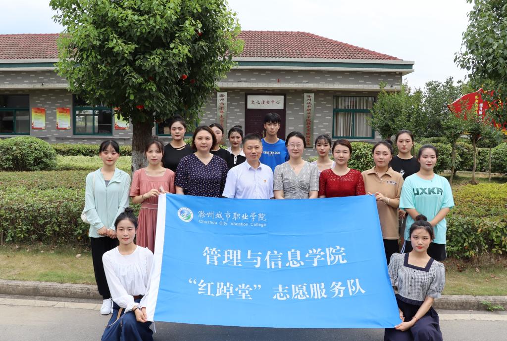 为迎接“七一”党的生日,深入挖掘家乡红色资源,增强学生社会实践能力,6月22日管理与信息学院“红踔堂”12名志愿者在校学生处和校团委的带领下,赴滁州光荣院开展为期4天的“忆往昔峥嵘岁月,践今时少年图强”“三下乡”社会实践活动。党委委员、学生处处长杨如江,校团委副书记陈婷婷,滁州市光荣院支部书记、院长丁辉和管理与信息学院教师代表参加活动启动仪式。