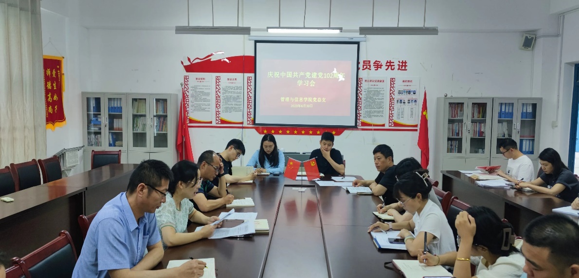 为深入学习贯彻习近平新时代中国特色社会主义思想和党的二十大精神,庆祝中国共产党成立102周年,弘扬伟大建党精神,激励党员教师在学院发展的新征程上展现新担当新作为。6月30日上午,管理与信息学院党总支在学院党员会议室开展了庆祝“七一”主题系列活动。