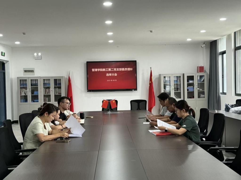 本次增补选举工作严格执行党内选举制度,充分发扬党内民主,程序规范、纪律严明,选举结果获得全体党员一致认可。管理学院教工第二支部委员会班子将以此为契机,进一步强化责任意识、凝聚工作合力,紧紧围绕学院人才培养、学科建设与师资发展等中心任务,充分发挥基层党组织的战斗堡垒作用和党员先锋模范作用,为推进学院高质量发展提供坚实的政治和组织保障。(图/文:邢桂先,初审:张慧,复审:冯曦,终审:陈兴旺)