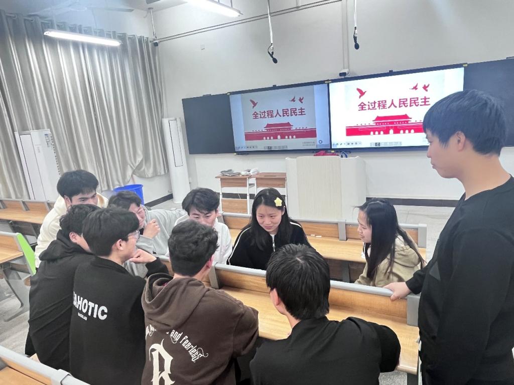 部分班级团支部组织学生以观看红色影片的形式开展主题团日活动,在观影结束后,同学们积极讨论,分享自己的观影感受和思考。部分班级团支部组织学生通过座谈会、分组讨论地形式,让学生全面了解全过程人民民主的理论体系、发展历程和实践成果。同时,23高乘高专1班团支部通过红色剧本杀游戏的形式,带领学生身临其境地感受“全过程人民民主”的深刻内涵,大家结合自身实际,积极参与,畅所欲言,围绕全过程人民民主的主题展开了热烈而深入的讨论。这种广泛参与 、深入讨论的方式,不仅增加了活动趣味性,增强了同学们对全过程人民民主的认识,也提高了他们的政治素质和参与民主实践的能力。