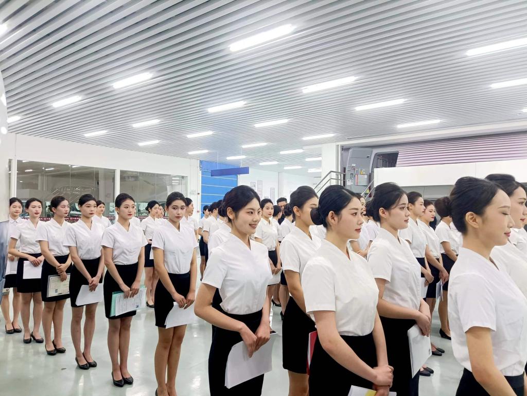 本次长龙航空乘务员面试通过海选、初检、初试、复试、四个环节进行。我院2022级空中乘务专业的同学们精神抖擞、面带微笑、翘首以盼。在长龙航空面试官面前展现空乘专业最佳的职业风采。