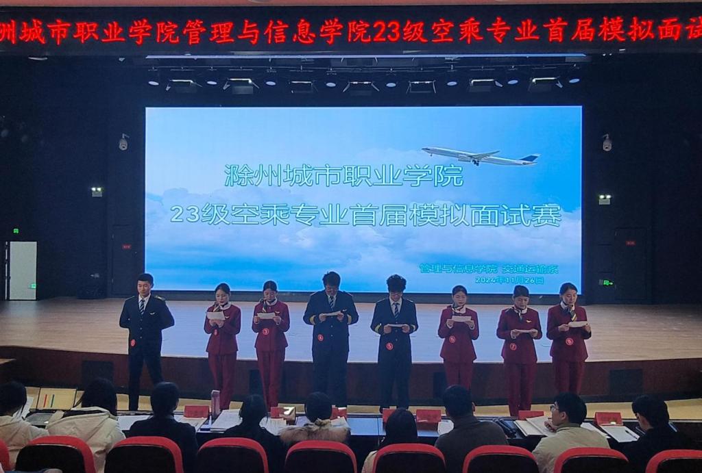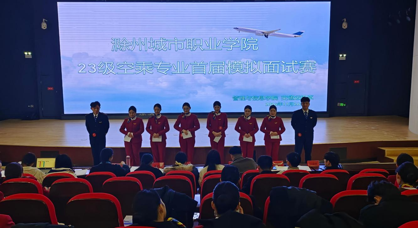 2024 年 11 月 26 日上午,滁州城市职业学院管理与信息学院首届空中乘务专业模拟面试比赛于学院4 楼报告厅精彩上演。