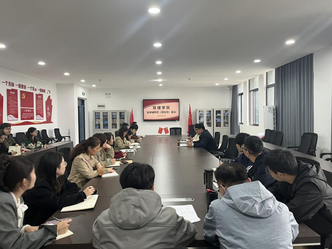 为深入贯彻落实立德树人根本任务,进一步统一思想、明确任务,提升学生工作队伍的凝聚力和战斗力,10月31日,管理学院在润德楼301室召开全体辅导员会议,会议由学院党总支书记陈兴旺主持。