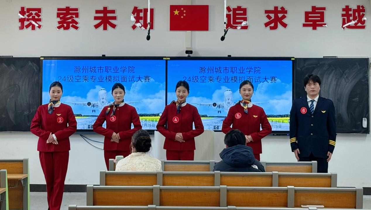 模拟面试严格按照航空企业招聘的标准流程进行,特邀校内专业教师及具有行业背景的企业教师共同担任评委,全方位模拟了面试的关键环节。面试内容涵盖职业形象展示、自我介绍、广播词播报、情境应答以及专业知识问答等多个维度,全面考察学生的语言表达、应急处理、服务意识、团队协作及专业理论知识水平。