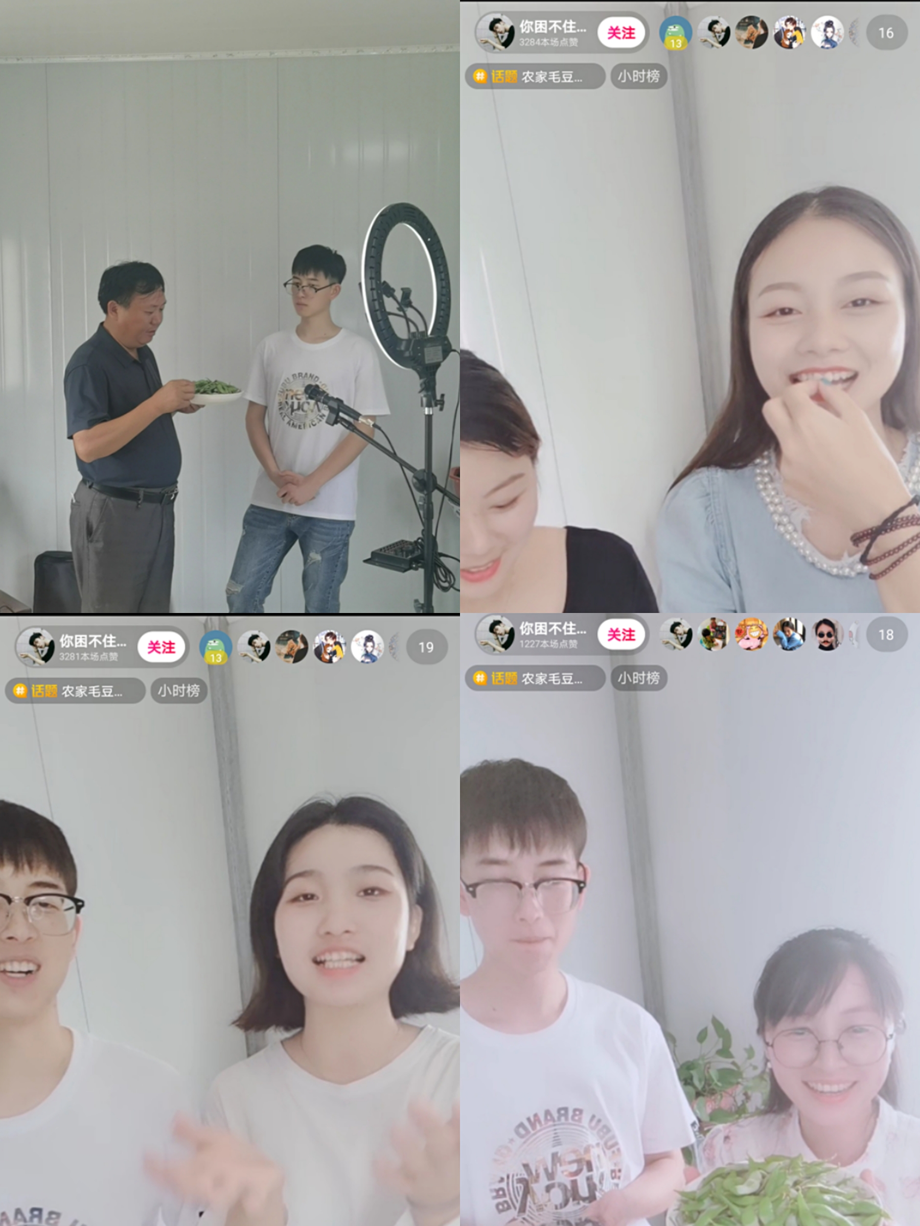 在参观了毛豆加工车间和多家农场之后,队员们对当地的优质特色农产品有了更深入的了解,直播组的同学们带着详细的笔记,在大陈村村委和大陈村农产品就业扶贫车间的大力配合下,团队成员组织开展了一次“农家毛豆直播带货”,助力大陈村电商扶贫工作的开展。