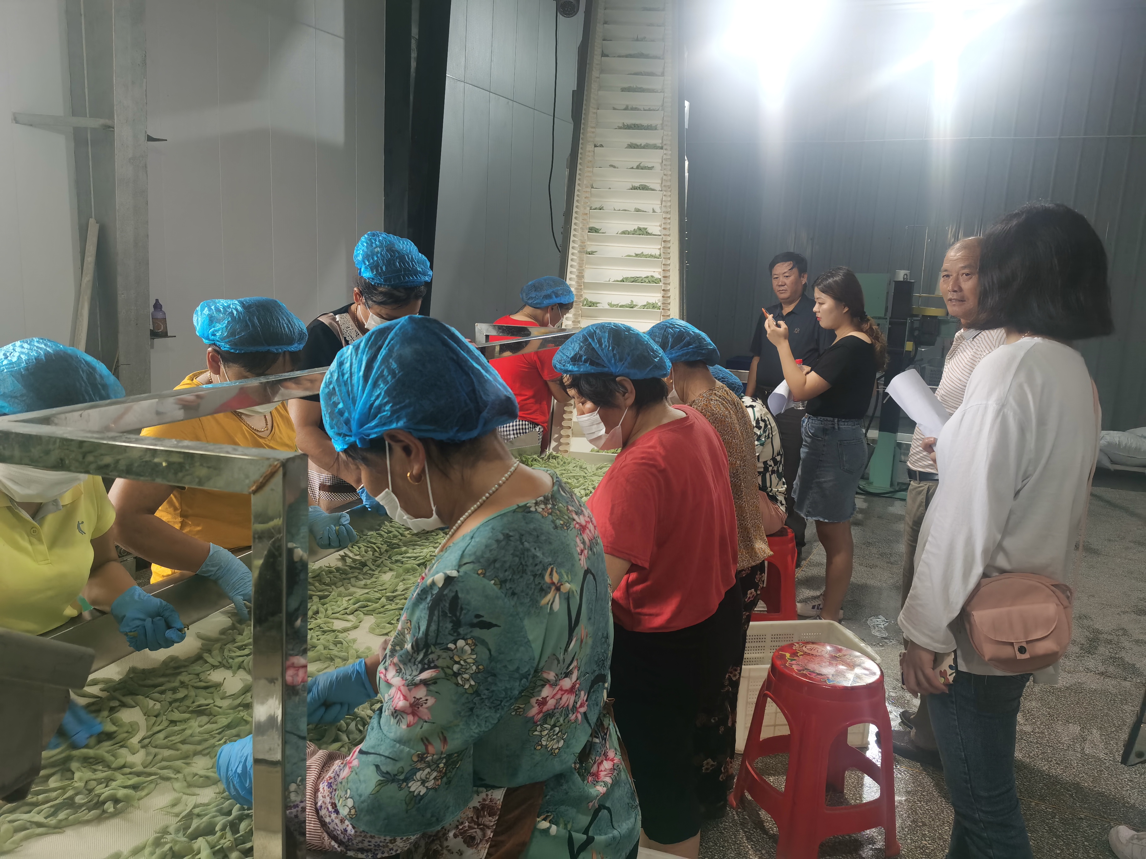 实践团队首先参观调研了大陈村农家毛豆业扶贫车间,负责人带领成员参观了各个车间,并详细介绍了农家毛豆的加工程序。之后团队成员对车间负责人开展了深度访谈,就农副产品的销售困境进行深入挖掘,深刻了解到科技成果普惠广大农民、科技致富发展方式给村民带来的巨大生活转机。