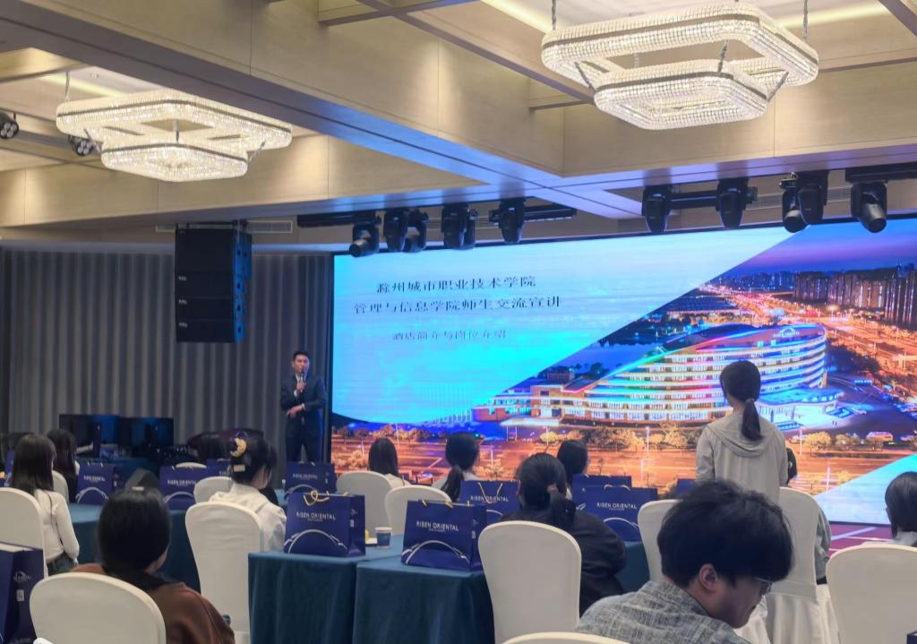 为扎实做好22级旅游管理专业学生岗位实习及就业工作,拓宽学生就业渠道,管理与信息学院采取“走出去,请进来”的方式,分别于4月16日、4月22日邀请合肥融创酒店群、合肥栢景朗廷酒店来校做专场宣讲会,4月24日组织学生去滁州东昇湖假日酒店参观交流,参加招聘宣讲会,多路径、全方位开展访企拓岗,助力学生实习就业。