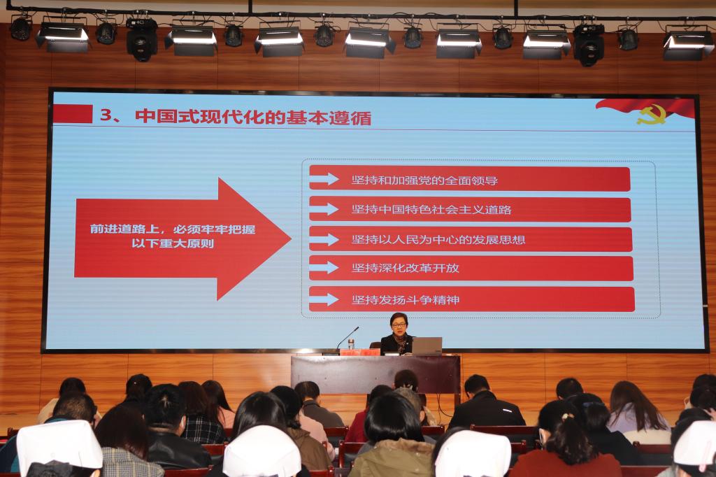张书记紧扣党的二十大的主题和主要成果,结合我省、我市和我校的实例,边讲边议,阐述了党的二十大重大意义、重大成果,讲解了过去五年工作和新时代十年的伟大变革,阐释了习近平新时代中国特色社会主义思想的世界观和方法论和新时代党的使命任务,解读了全面建设社会主义现代化国家的目标任务和自我革命引领社会革命的要求。