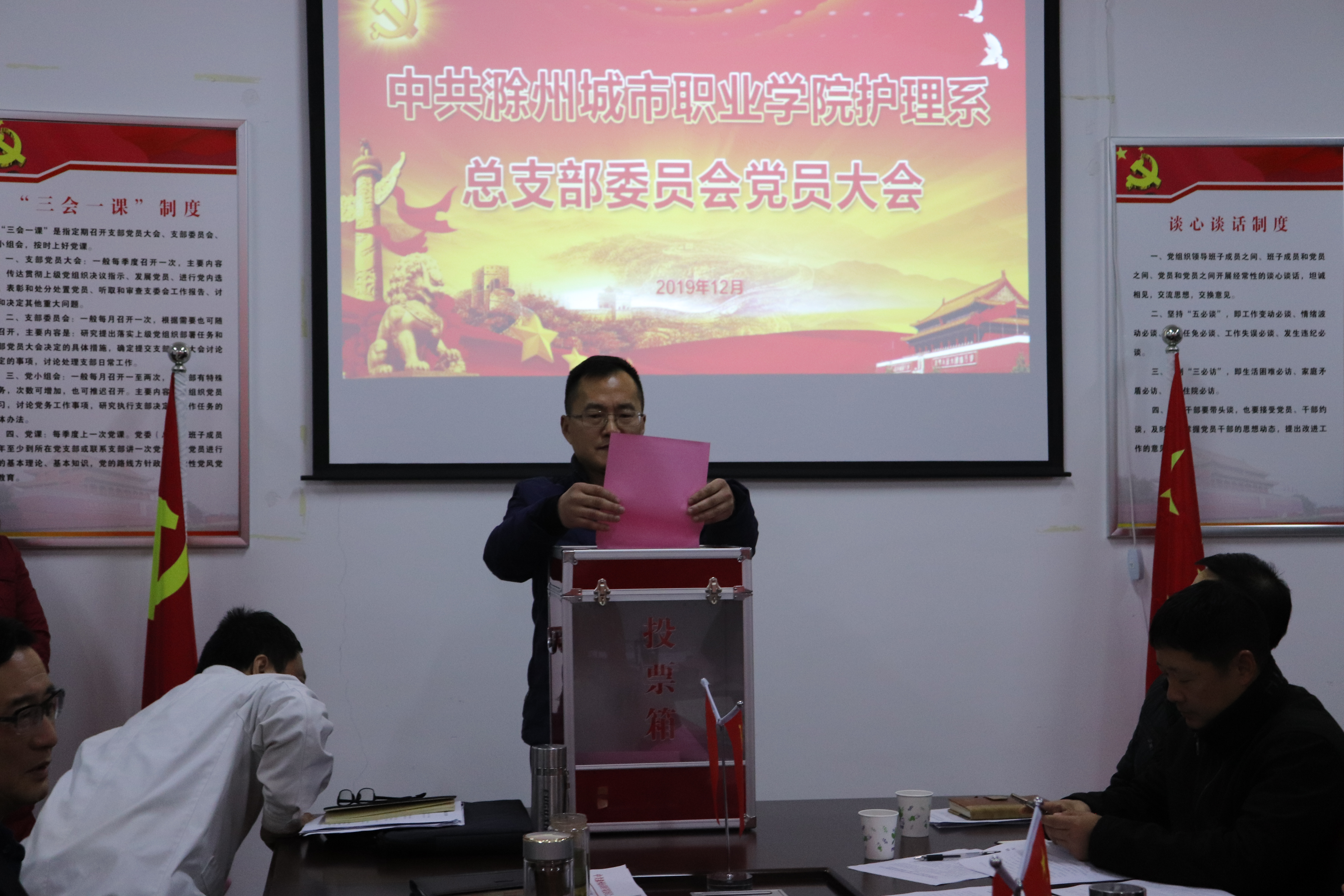 在选举阶段,大会以举手表决的方式,通过了《选举办法》、监计票人建议名单、候选人名单。最终采取无记名投票方式差额选举出蔡季秋、章正福、朱启来、左晶晶、卢齐伟、李勋华、秦海娇七位同志组成护理系党总支新一届委员会。