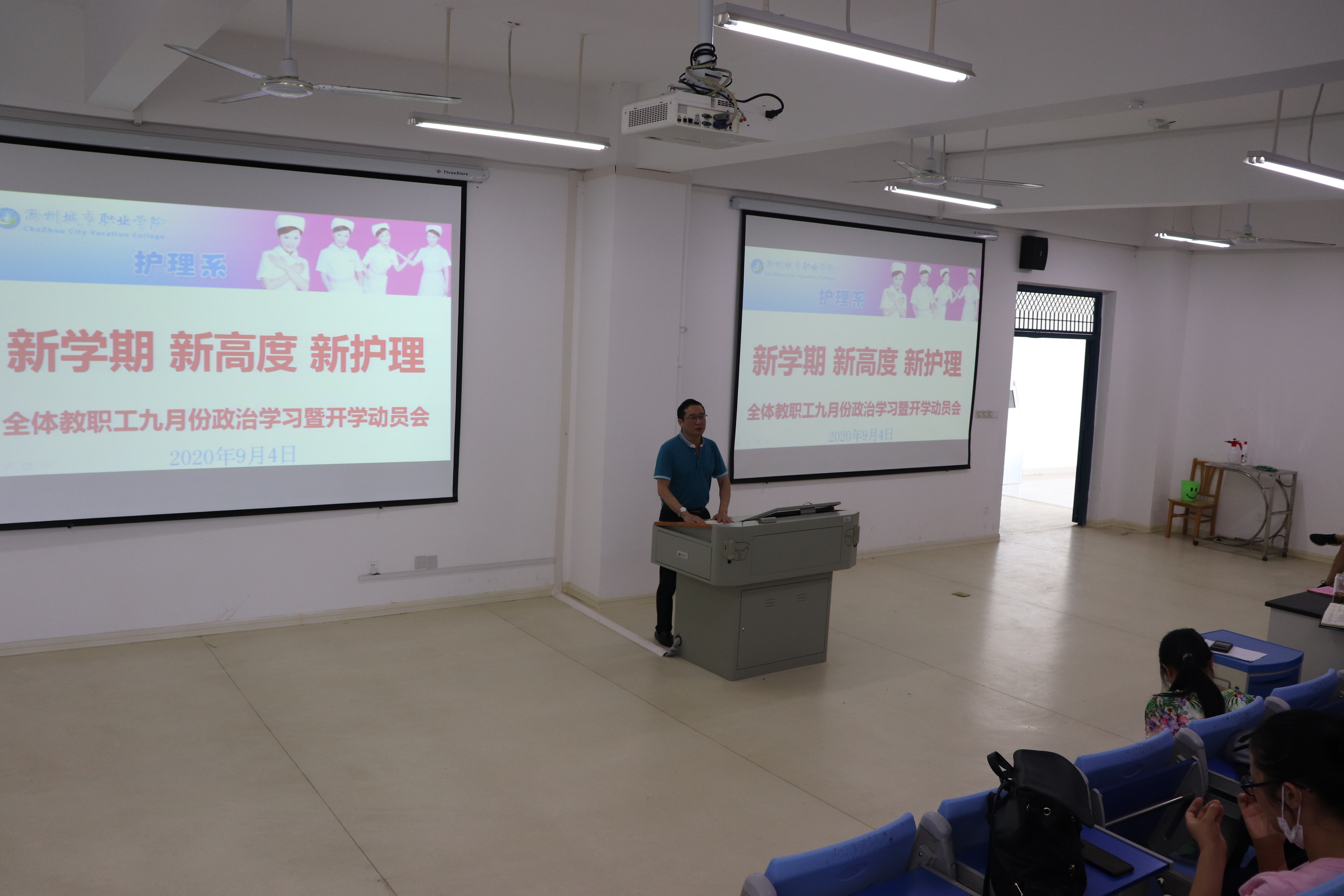 为切实做好2020年秋季开学准备工作,确保各项疫情防控措施落实到位,9月4日上午,护理系在B3-211召开全体教职工政治学习暨开学动员会。系主任章正福主持会议。