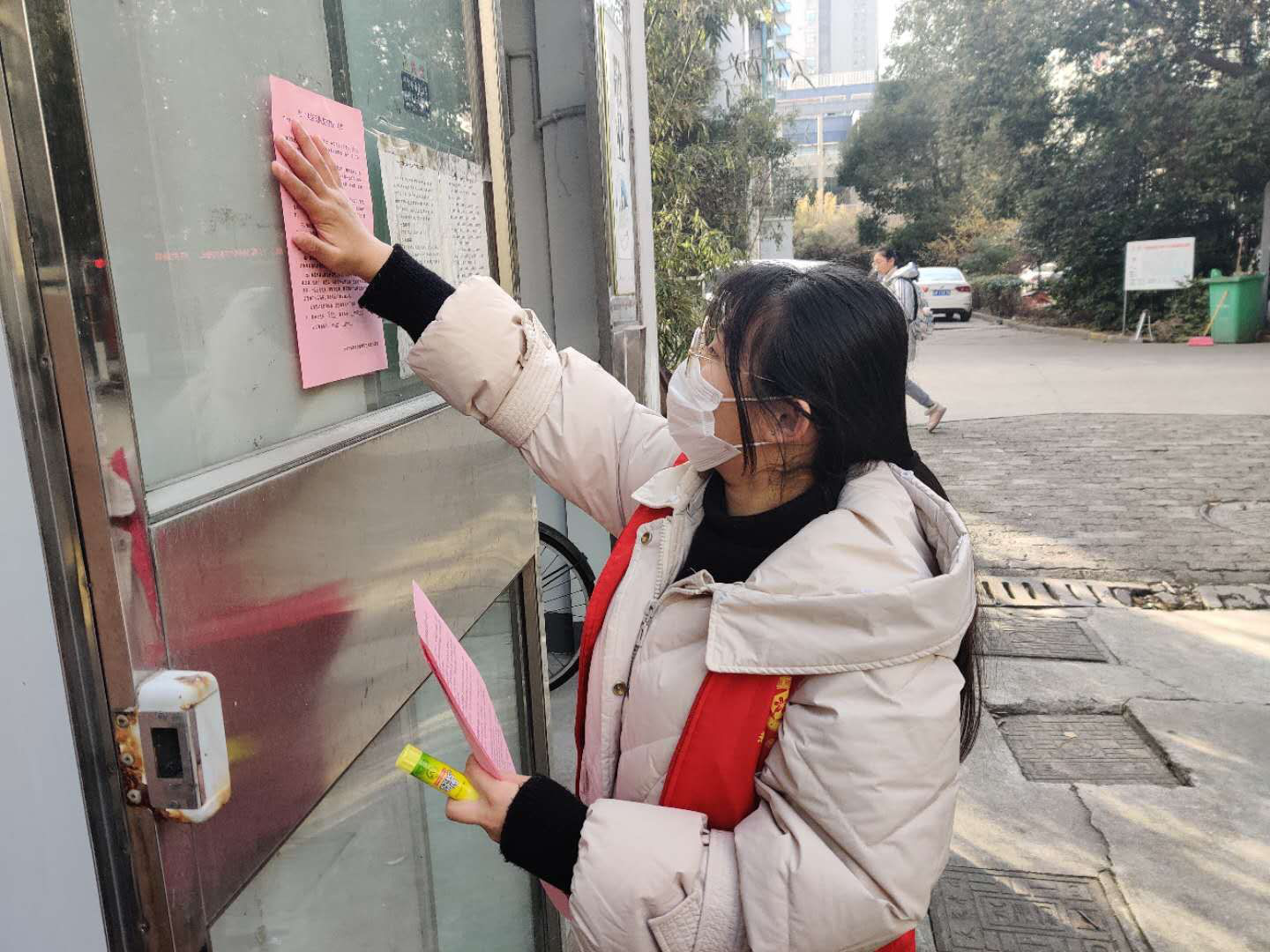 2002年出生的陶佳,是17护理初专3班的一名学生。2021年1月,寒假返家的陶佳主动请缨,积极踊跃加入天长市广陵街道天一社区的志愿者队伍,配合社区工作人员开展疫情防控志愿服务工作。