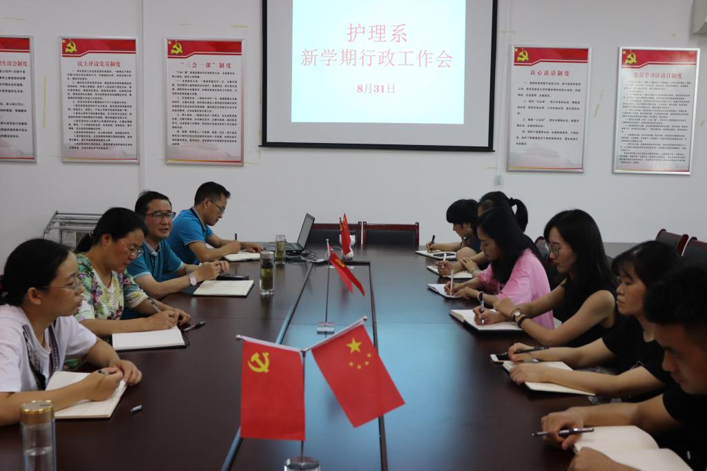 8月31日下午,护理系在党员活动室召开秋季开学行政工作会议,研究部署新学期各项工作。系党政班子成员、行政及全体辅导员参加会议。系主任章正福主持会议。