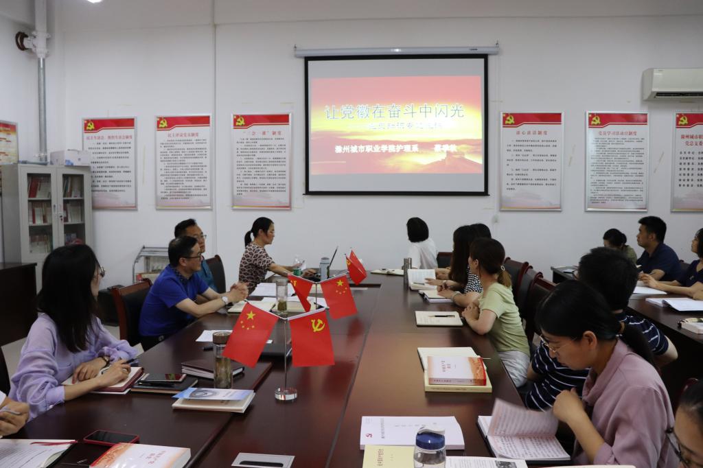 7月2日下午,护理系党总支在党员活动室举行全体党员政治学习会,深入学习贯彻习近平总书记在庆祝中国共产党成立100周年大会上的重要讲话精神。全体党员教师参加学习活动,系党总支书记蔡季秋主持会议。