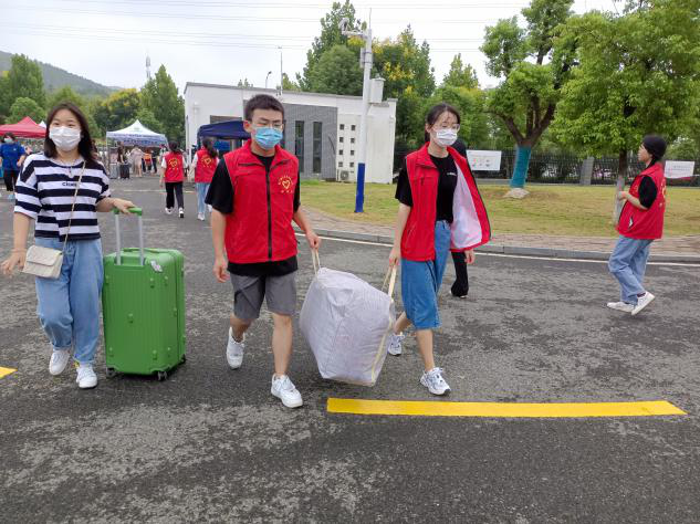 早上8点整,志愿工作正式拉开序幕。一群身着“红马甲”的青年志愿者们穿梭在校园中,为返校老生志愿服务活动,他们活跃的身影,在校园里形成了一道亮丽的风景线。面带微笑、耐心细致地为前来报到的同学咨询、引导、搬运行李等服务。当一个个问题得以解答和解决时,同学们脸上露出满意的笑容。服务期间,校园井然有序、有条不紊,他们赢得了广大学生和家长的普遍赞扬。
