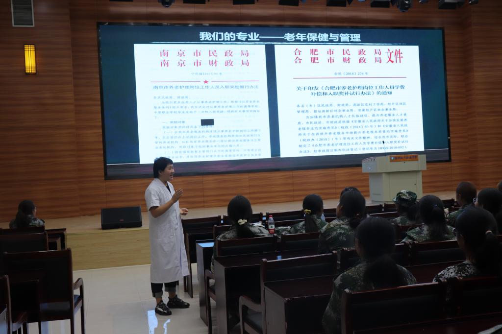 左晶晶副主任从系部、专业、学习、课程四个方面向新同学们介绍了学院的历程、护理课程体系、护理专业的课程设置以及实习基地,强调理论学习和技能学习相结合的重要性,并要求同学们珍惜时光,在大学期间努力学习。