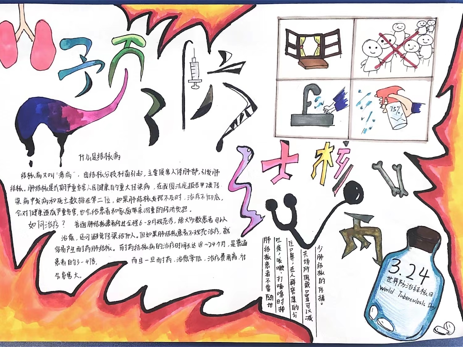 据悉,护理学院各班开展主题班会。同学们一起观看校团委推送的健康微课《结核病防治宣传》,认真学习了结核病防治知识,了解了肺结核病初期症状,正确诊疗方法以及预防结核病的有效途径。同时组织同学们进行了“预防结核病”的问卷知识答题;为进一步提高学生的防治结核病的健康意识,护理学院开展了手抄报比赛活动,一幅幅精美的图文表达了护生健康生活守护安全的精神风貌。