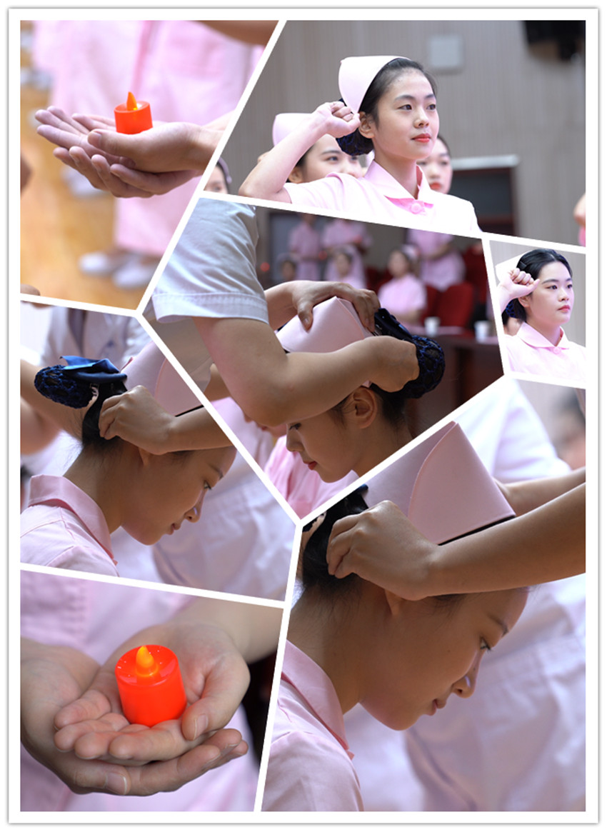 在熠熠烛光中,神圣而又庄严的授帽仪式拉开帷幕;伴随着《平安夜》的庄严乐曲,40名即将实习的护生代表身着统一的护士服,步履坚毅、端庄稳重地列队走到授帽老师前接受传光授帽。“我志愿献身护理事业,为护理事业奋斗终身”在铮铮誓言中,同学们表达了自己不辱白衣天使神圣使命的决心。