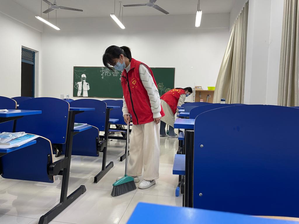 每周三常态化开展寝室教室卫生检查,同学们针对教室和寝室墙面、玻璃、桌椅、地面、厕所以及其他卫生死角,开展了大规模的环境卫生综合治理,共同打造一个温馨整洁的“青春之家”。