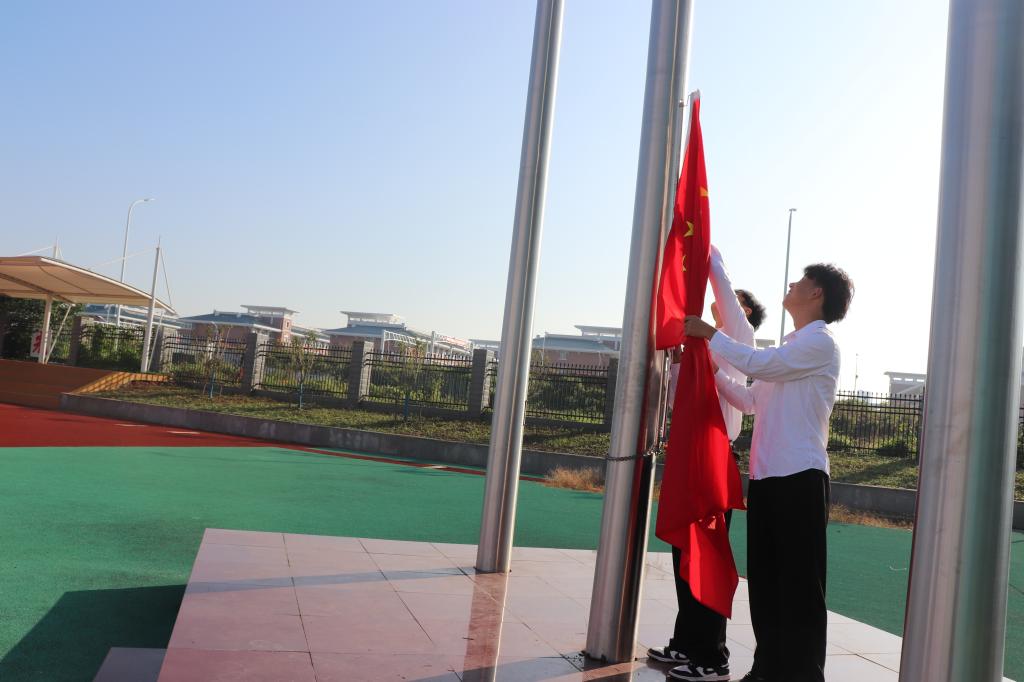 当雄壮的国歌奏响悦耳的音符,鲜艳的五星红旗像一团炽热的火焰,在灿烂的晨曦中冉冉升起。同学们身着整洁护士服,向国旗肃立行注目礼,用自己的方式,表达着对祖国的爱。
