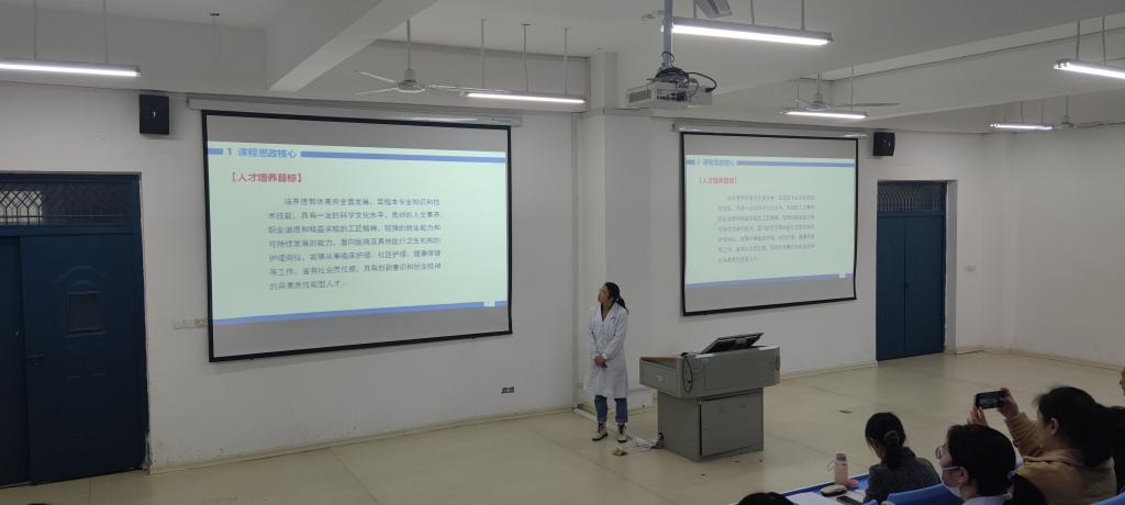 为进一步推进“课程思政”教学改革,充分发挥专业课程课堂教学育人主渠道作用,探索和示范“课程思政”教学的有效途径和方法,提高立德树人水平和人才培养质量。护理学院于11月17日下午举办课程思政教学能力比赛院部初赛,党总支书记蔡季秋、副院长李勋华及护理学院全体教师参加活动。