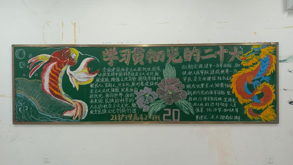 为了深入学习宣传贯彻党的二十大精神,为强化党建引领校园文化建设,创建文明校园,优化育人环境,营造良好的班级学习氛围。护理学院开展以“学习党的二十大”为主题的教室文化评比活动