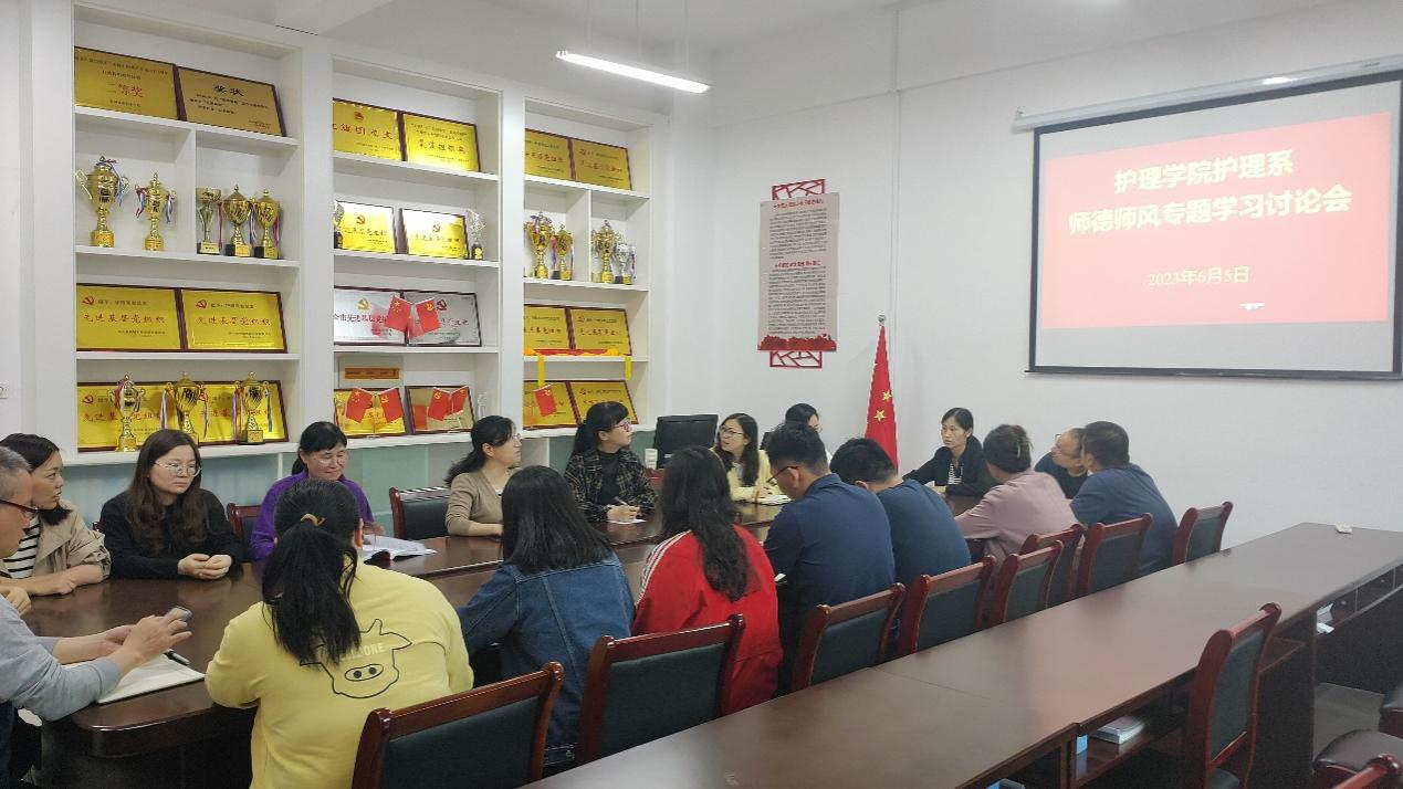 为进一步加强师德师风建设,不断加强教师的行为修养,规范教师从教行为,响应习近平总书记要求广大教师做 “四有”好教师的号召, 6月5日下午护理学院护理系召开全体教师“师德师风”专项学习会议。