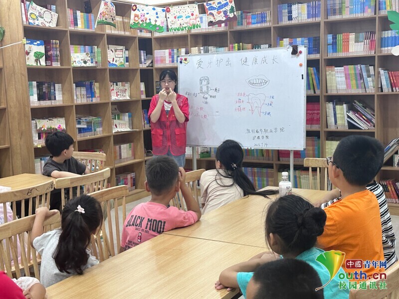 图为学生志愿者为社区小朋友上健康知识科普课程。中国青年网通讯员 苏欣 供图