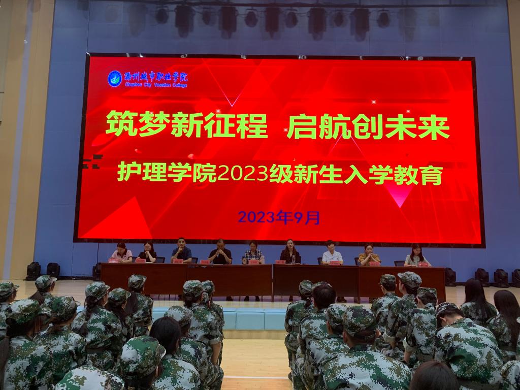为引导新生过好教育衔接第一关,9月11日晚,护理学院在校体育馆为2023级新生召开了主题为“筑梦新征程 启航创未来”的入学教育大会。护理学院党总支书记蔡季秋,护理学院院长金虹,学管秘书张莹莹、蔡淼,团总支书记王艳,教学秘书张瑞修,实训中心主任胡仁宜、继续教育学院马亚鸣老师,2023级全体辅导员和新生参加大会。大会由护理学院党总支副书记卢齐伟主持。