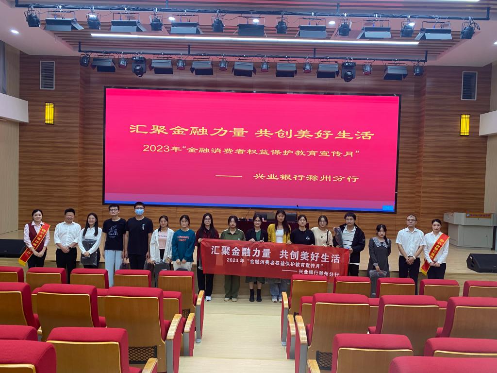 本次活动以授课的形式开展,兴业银行滁州分行零售金融部总经理为同学们普及了金融知识宣教。随后,兴业银行滁州分行营业部李卓副行长担任宣讲老师,通过PPT展示,为同学们讲解校园贷的危害、通过典型案例分析新型网络电信诈骗的新手段,普及反诈知识,提醒广大师生保护好银行卡和个人信息,了解掌握安全支付知识,引导同学们养成良好的消费习惯,增强自我保护意识,远离不良贷款。活动最后,设置了有奖问答互动,同学们纷纷踊跃抢答、积极互动,进一步增强了同学们对金融知识的学习兴趣。