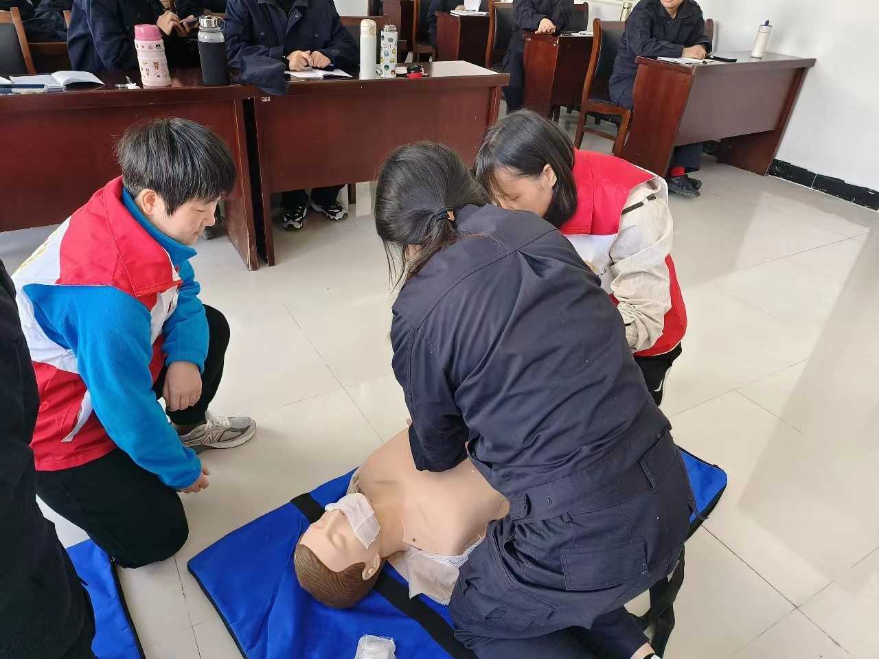 在明光市公安局,护理学院钱珺、杜曼、张莹莹、张瑞修四位教师,为新进辅警人员进行了紧急救护培训,培训主要内容包括心肺复苏、海姆立克等。为辅警人员具体讲解了在紧急情况下,如何判断和应对紧急情况、如何采取紧急措施、以及如何合理分配时间和资源等。通过本次培训,提高了辅警人员冷静迅速处理问题,和积极应对紧急情况的能力。辅警人员均表示本次培训很有意义,受益匪浅,将更加注重自身和他人的安全,为社会的安全稳定作出更大的贡献。