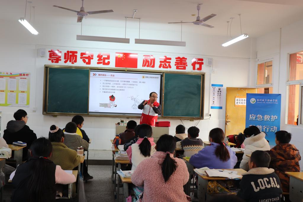 为了提高师生们对突发疾病和意外伤害的应急处理能力,帮助他们在紧急情况下能够及时、正确地采取救护行动,保护自己和他人的生命安全,减少潜在的伤害风险。11月20日,护理学院组织红十字救护师资前往石沛明德小学,开展应急救护培训活动。