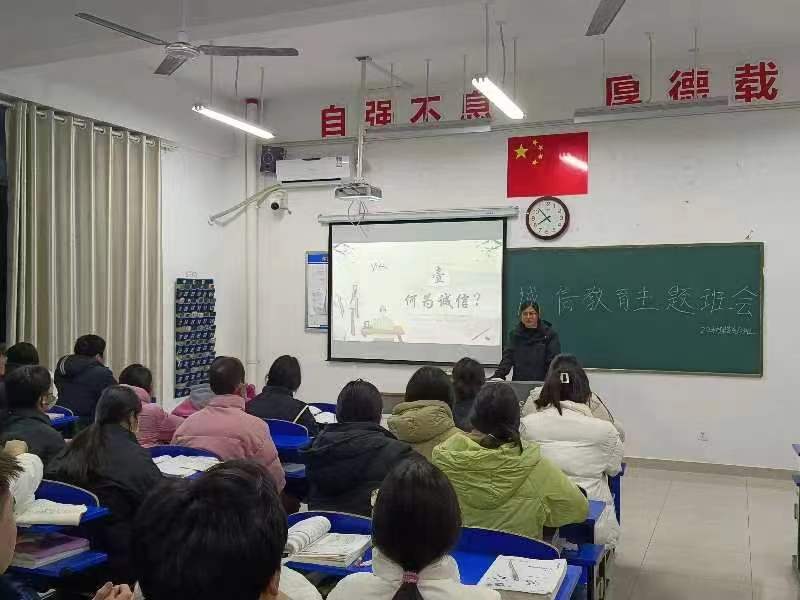 为深化诚信理念,培养学生的诚信意识,端正学生对学习和考试的态度。期末考试前夕,护理学院各班级召开诚信教育主题班会,护理学院全体辅导员、学生参加。