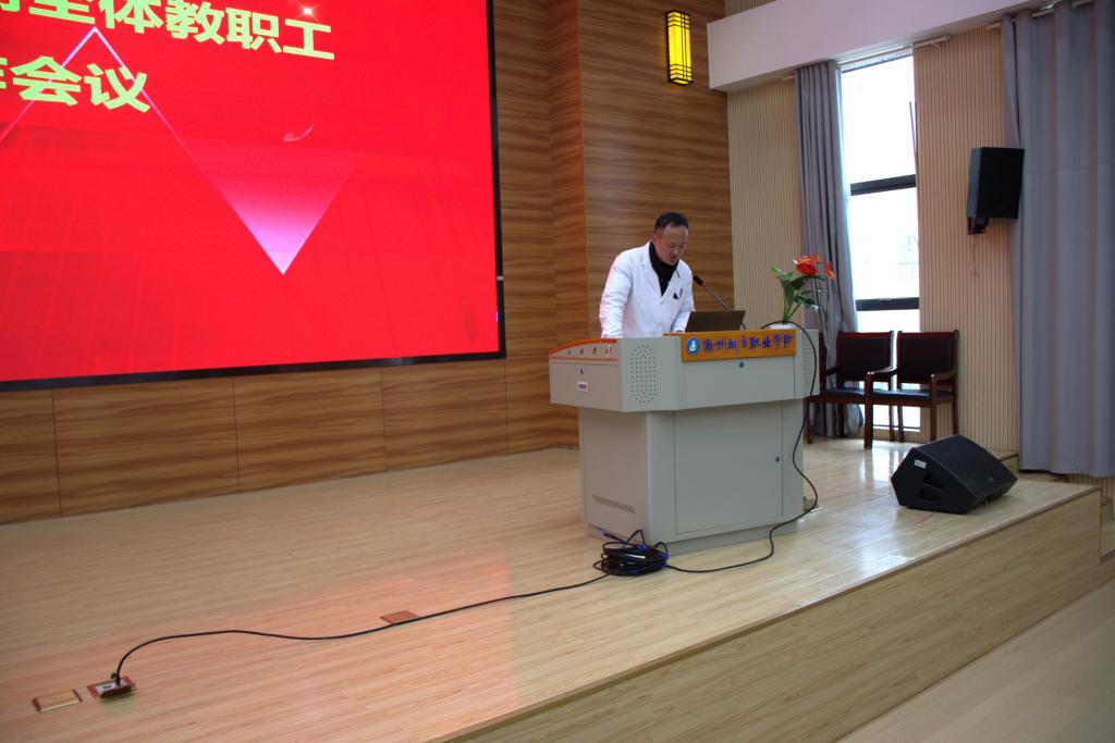 为进一步统一思想、凝心聚力、提振精神,确保新学期各项工作开好局、起好步,3月1日下午,护理学院在第二报告厅召开新学期开学全体教职工大会,护理学院全体教职工参加会议,会议由护理学院副院长李勋华主持。