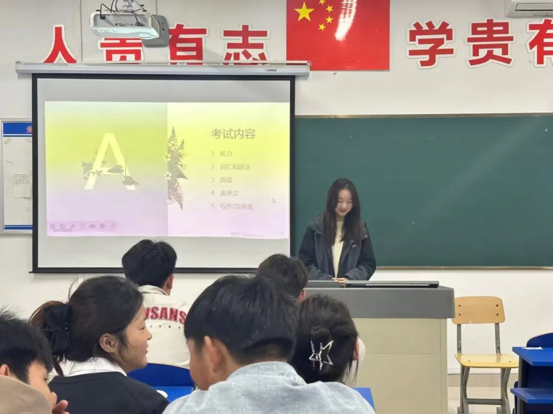 4⽉7⽇下午,2023级家政班成功举办了英语经验交流会。在此前的英语B级考试中,23家政班的通过率为80%,通过率在护理学院23级中名列前茅,为⿎励更多同学共同进步,特举办交流会。 活动伊始,辅导员朱云林分享了班级的成绩,并且指出这是各位考⽣在⼊校后短时间内迅速调整⾃⼰的⻆⾊,努⼒奋⽃的结果。家政班的同学⼀直谨记滁城院“勤学明理 ,慎思笃⾏”的学⻛。⾮学⽆以⼴才,⾮学⽆以明智。最后朱老师真诚地希望今年参加B级和四级的同学再接再厉,取得更大的辉煌!