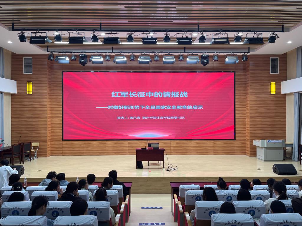 今年4月15日是第九个全民国家安全教育日。为贯彻总体国家安全观,增强学生的国家安全意识和素养,夯实以新安全格局保障新发展格局的社会基础。4月18日晚上,由护理学院主办的“国家安全教育日”讲座活动如期开展,邀请到滁州学院体育学院党委书记黄永青教授为师生代表们带来一场精彩讲座。