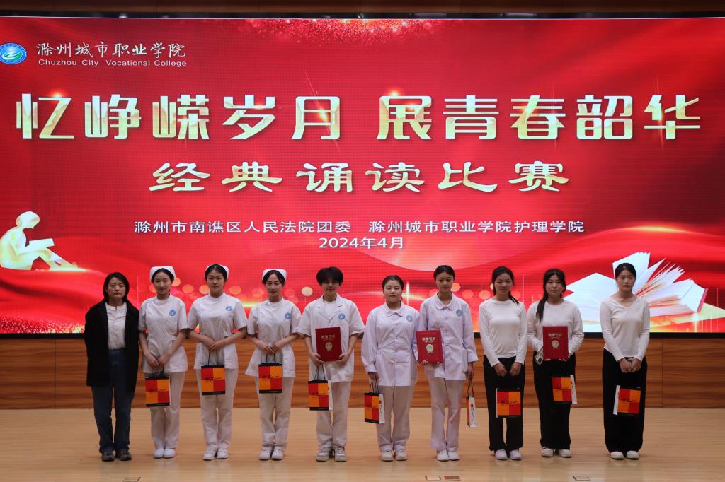 4月23日,第29个世界读书日如期而至。为了传承中华优秀传统文化,共同推动书香校园的建设,护理学院团总支与南谯区法院团委共同举办了“忆峥嵘岁月,展青春韶华”经典朗诵比赛。滁州市南谯区人民法院党组成员、政治部主任刘兴胜,护理学院党总支书记蔡季秋,滁州市南谯区人民法院团委书记、综合办公室主任冯妍,护理学院团总支书记王艳,护理学院辅导员葛子正担任评委,近200名师生代表现场观摩比赛。