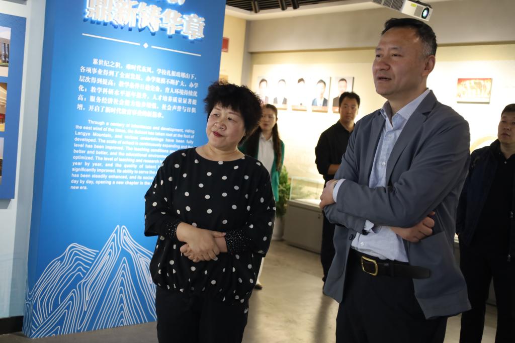 王燕永对张银花、李宝山到来表示了欢迎,随后一行来到了校史馆,通过参观介绍,了解了学校的历史和发展,张银花认为学校底蕴深厚,师资力量雄厚,教学严谨,在省内外享有较高声誉。