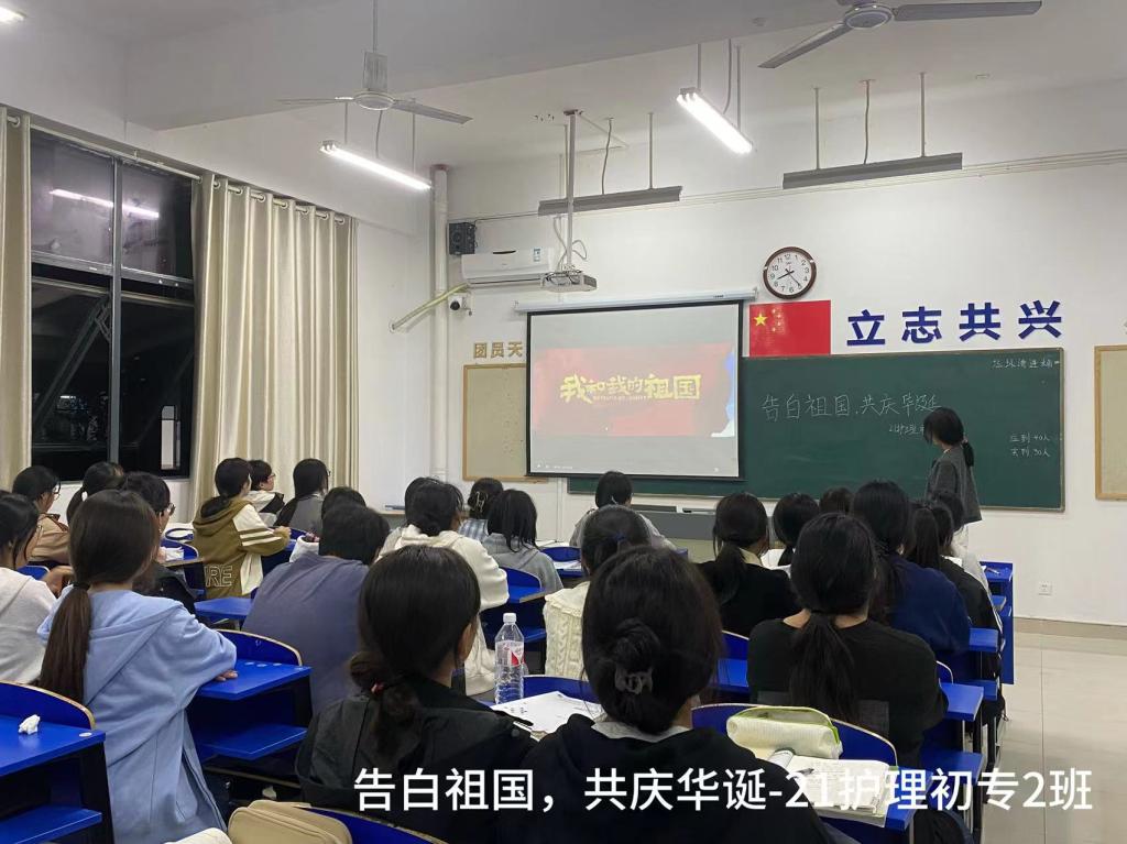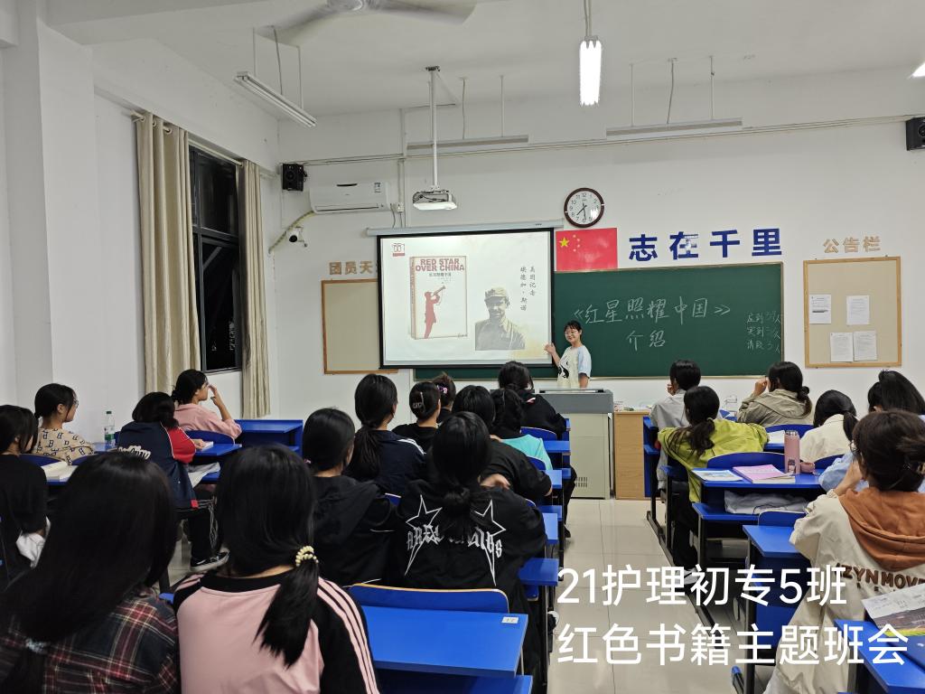 随后,各班团支书带领大家共同欣赏了爱国诗歌朗诵,并请同学们推荐自己喜欢的红色经典书籍。21护理初专6班张欣雨同学极其富有感情的朗诵《中国梦,祖国颂》带领同学们浏览祖国的大好河山,21护理初专5班团支书向大家推荐《红星照耀中国》,我们随着斯诺的脚步共同进入红军苏区见证伟人的英姿。这些感人至深的诗歌和书籍不仅让同学们感受到先辈们为祖国独立和繁荣所付出的巨大牺牲,也激发了大家的爱国情怀和奋斗精神。如果信仰有颜色,那一定是中国红!