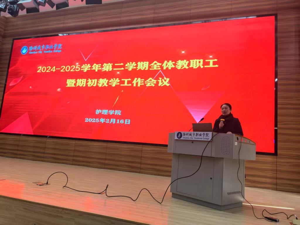 2月16日上午,护理学院在第二报告厅召开新学期教学工作大会,全体教职工参加会议,会议由副院长李勋华主持。