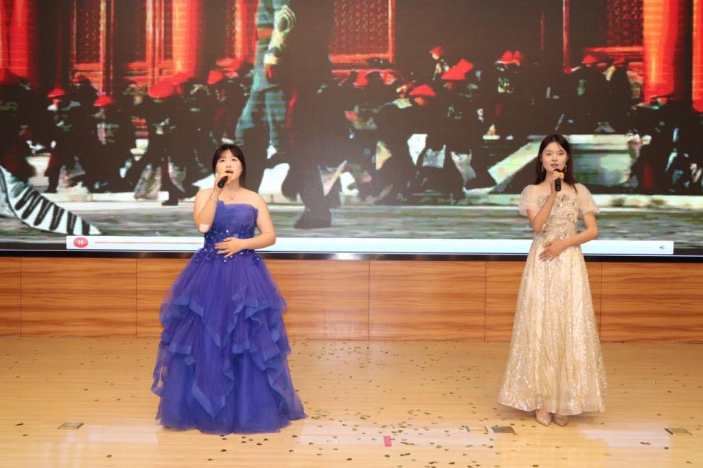 歌声与舞姿交织,古典与现代碰撞。独舞《花间酒》堪称晚会的“国风亮点”,以舞释酒、以韵传情,灵动舞步中藏着古韵风华,婉转旋律里载着浪漫意境,让在场观众沉浸式感受传统美学的魅力;而《小情歌》吉他弹唱则切换至“青春频道”,一把吉他、一段和弦,青涩嗓音勾勒出纯粹的美好,将校园里的浪漫与憧憬轻轻诉说。