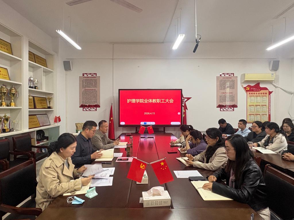 为扎实推进教学评估各项工作,全面提升教师教学能力,4月15日下午,护理学院在党员活动室召开全体教职工大会,同步部署教学评估、教育教学技能竞赛等重点工作,全体教职工参会。