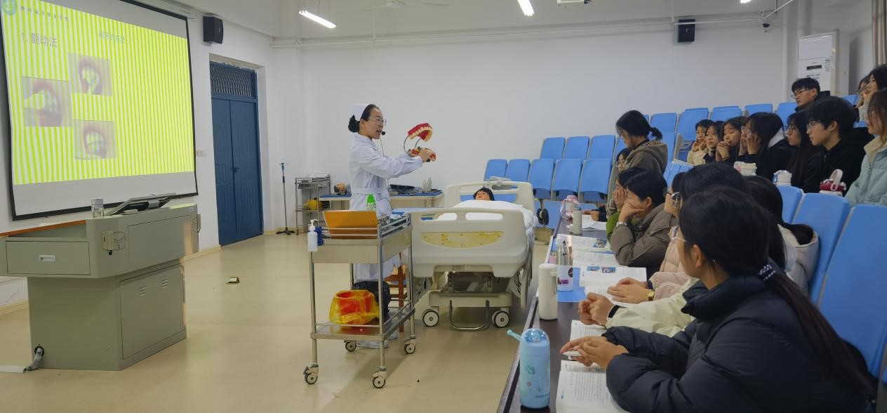 韩雪老师公开课主题为《口腔护理》,整堂授课内容熟练,思路清晰,擅长运用现代化教学手段,如多媒体教学和信息化平台,有效地引导学生的创新思维,激发学生的学习兴趣。公开课后,参与听课的教师对新教师的授课进行了点评和指导,他们围绕教学目标、教学设计、教学方法、教学效果及思政元素融入等方面进行了详细的指导,帮助新教师进一步提升教学能力。