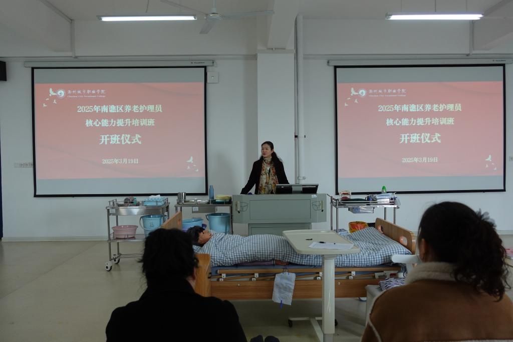 为进一步提升滁州市南谯区养老服务从业人员职业素养和专业技能,满足老年人多样化、多层次的养老服务需求,2025年3月19日至20日,我院举办了南谯区养老护理员核心能力提升培训班。此次培训共39名养老服务人员参加。培训课程包含职业素养、老年人心理照护、日常生活照料、常见疾病预防照护等多个方面,我院教师为学员授课。