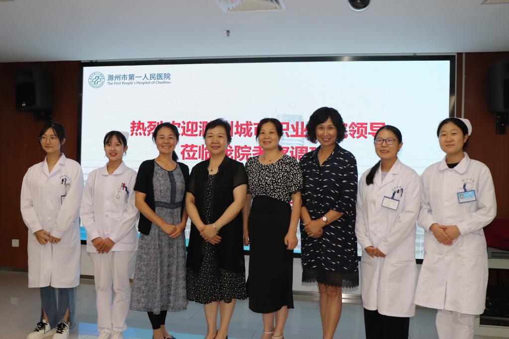 滁州市第一人民医院参加此次会议的有院党委书记、院长刘家珍,党委委员、护理部主任辛玲,科教科、检验科等相关科室负责人,部分优秀带教老师及我院优秀毕业生、正在实习的部分学生代表等参加了调研。会议由辛玲主持。
