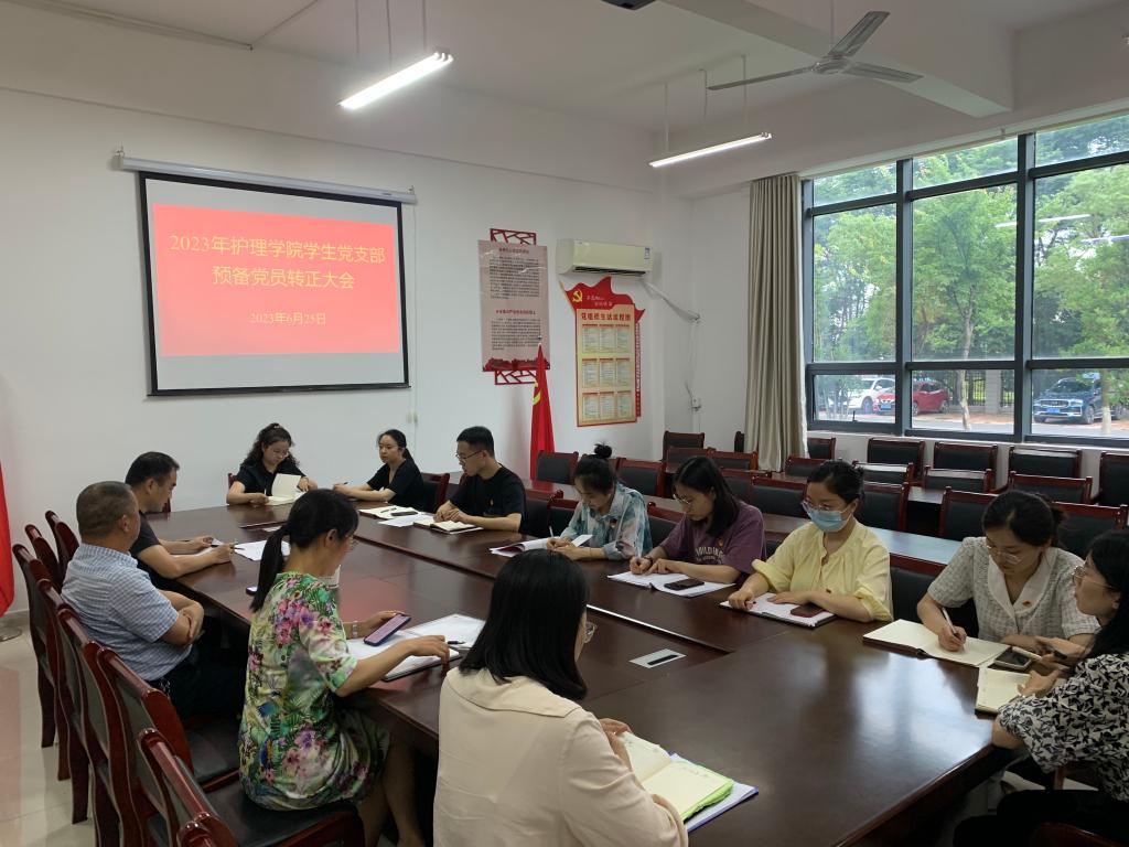 2023年6月26日下午,护理学院学生党支部召开预备党员转正大会,全体党员同志参会,支部书记卢齐伟主持。